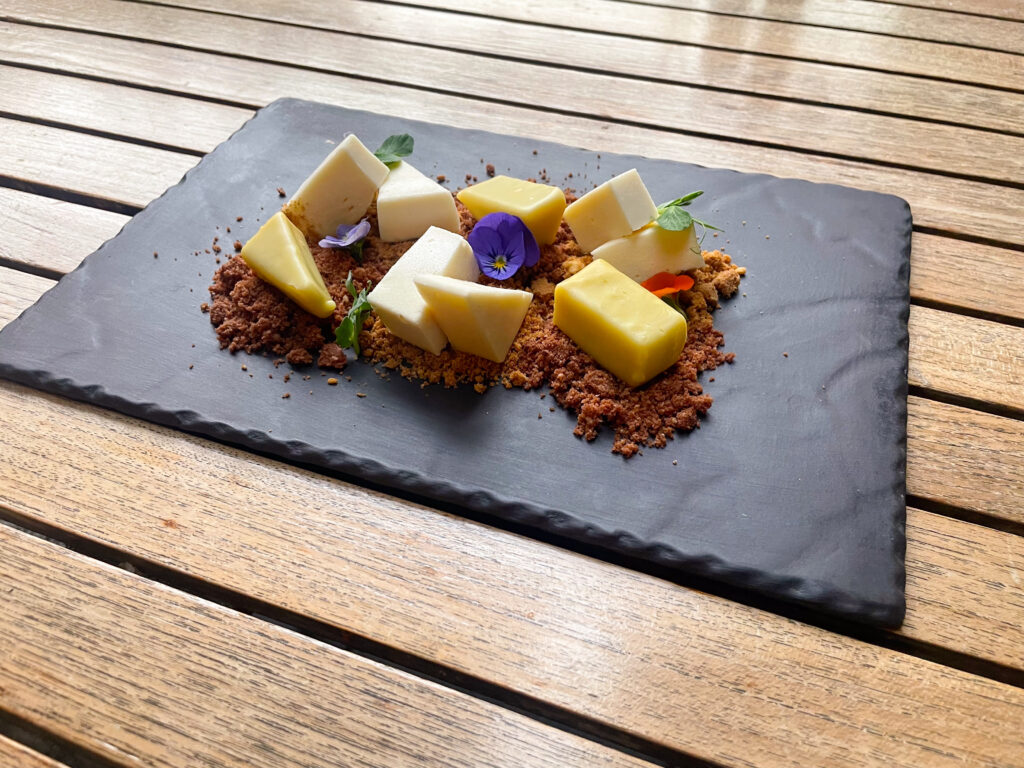 Una experiencia gastronómica única e inolvidable, chicharrón de tapioca, mousse de aguacate, esquites con aderezo de chicatana.